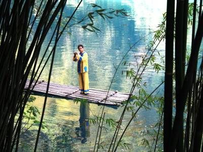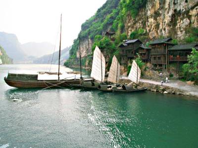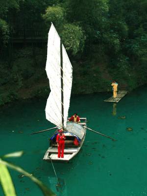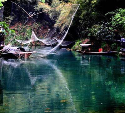 龙进溪——湖北宜昌三峡人家风景区内的精华景点。走进龙进溪,如同走进一个世外桃源,走进了梦中那个遥远的家园。海水般湛蓝的溪水被群山环绕,林木苍翠挺拔,烟雾弥漫,古帆船静泊水中,吊脚楼掩映在竹林深处;青石、小桥、流水、质朴的山歌,明朗而甜美;清秀的土家女儿,依着溪水、山花、野鸟,怡然自得;水车在水里转动,怡情欢畅;如果再坐上小渔船,漂荡在蓝色的溪水里,你就会感受到,这是一方净土、一个乐园,你就有了想梦、想家、想母亲、想万物的萌动,想灵魂的翔舞……于是,你疲惫的心声,被现代生活所压抑的心灵,会得到抚慰、安宁、满足!