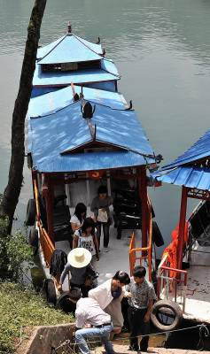 端午节期间,恩施州宣恩县珠山镇双龙湖风景区,前来游湖的人络绎不绝。相对而言,那条仅有一条石梯与水面相连的”码头”显得拥挤而破败。素有”祖国后花园”之称的恩施山水风光、人文风情、民族文化等一度因交通、信息闭塞而少人问津。随着高速公路挺进恩施、随着铁路即将开通,恩施的山门随之洞开。而今年”五一”期间恩施接待游客量较往年同期猛增近3倍达24.4万人次,旅游业收入较去年增长382%。客来了招待不周、道路拥堵、客房难找、导游奇缺等,使当地旅游业发展面临”少人问津”到”客满为患”转轨考验。而从”找一个靠岸的码头”入手,一步一个脚印的解决问题考验着恩施州各级党政部门在应对旅游业发展上的执政能力。(视界网签约摄影师:宋文摄)