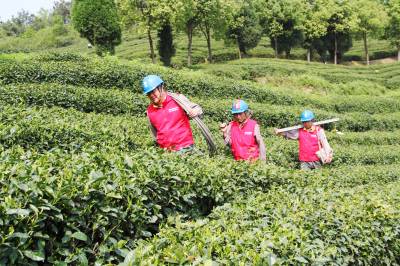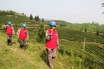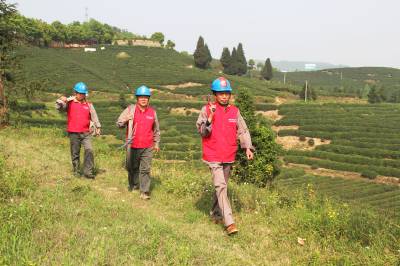 茶乡“电保姆” 4月13日,谷城县供电公司五山供电所员工正在玉皇剑茶业基地巡视线路。该县有茶叶面积16.5万亩,当好电保姆,24小时为茶企提供供电服务,保茶企安全、可靠供电,成为该公司当前首要工作。 视界网马明刚摄