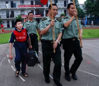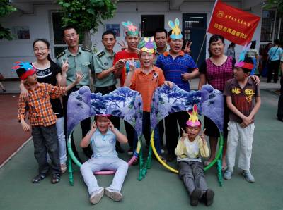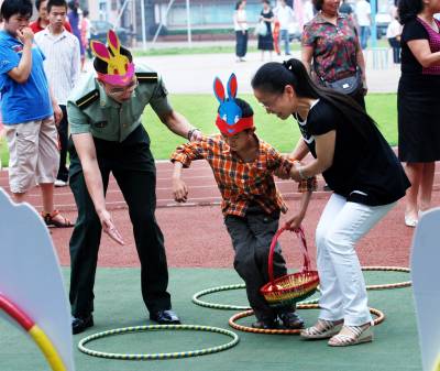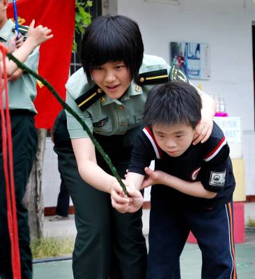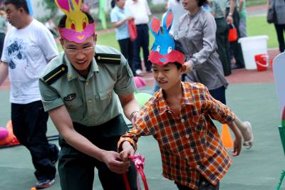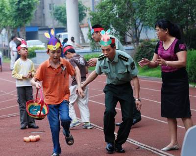 6月13日,二炮指挥学院的学员来到江岸辅读学校,同智障孩子开展各种联谊活动,共迎端午佳节。