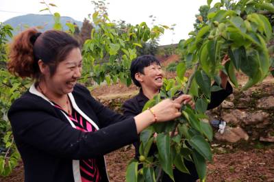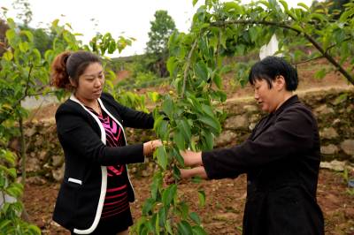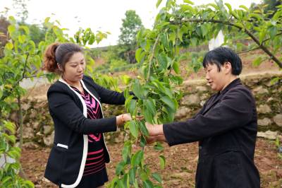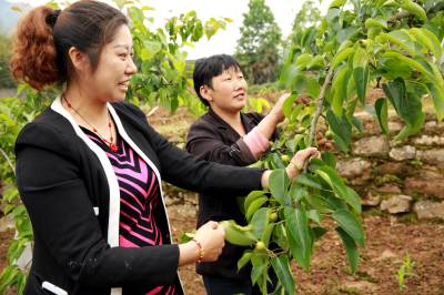 种植黄金梨铺富路 23日,巫峡口村计生专干向容正在查看种植大户李厚香的黄金梨今年挂果长势。巴东县农业局、镇农业服务中心确定官渡口镇巫峡口村为“农民田间学校实验实习基地”,在该村发展黄金梨1000亩,今年有300亩挂果。据介绍,该村有400多户种植黄金梨果树,其中有340多户是贫困户,两至三年后,果农种植户可全部脱贫致富。(视界网穆世祝摄)巴东县官渡口镇中心学校(444309)15335850858