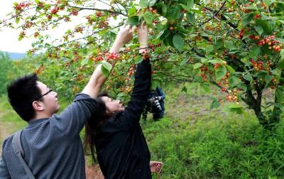 4月23日,正值樱桃熟了时期,襄阳市区的游客纷至沓来南漳樱桃谷马家嘴採摘樱桃。近年来,马家嘴村以建设美丽乡村为依托,鼓励村民种植樱桃,已经形成3000亩的种植规模,成为襄阳境内规模最大、人气最旺的樱桃谷游客观光、採摘基地。 (视界网 周 正 熊明银 摄)