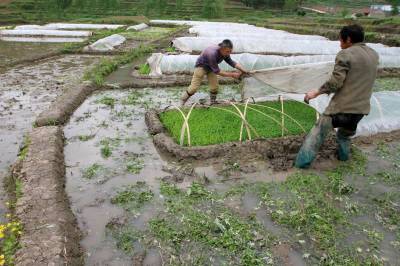图二:4月24日,房县城关镇晓阳村农民在管护秧苗