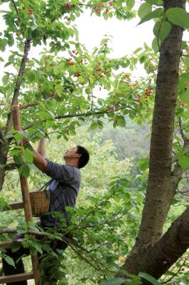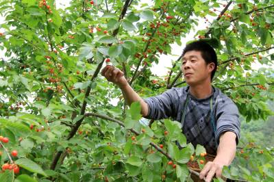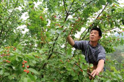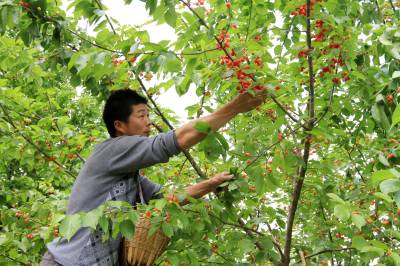 4月24日,房县城关镇八里村农民李必宏在采摘早熟的樱桃。该县改良当地老品种樱桃,引种、嫁接美国、俄罗斯、日本大樱桃,扩大早熟和晚熟的反季节樱桃面积,抢占市场先机。目前,房县反季节樱桃园面积达2000多亩,樱桃俏销北京、上海、广洲等大中城市,广受消费者亲睐。