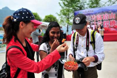 夷陵:生态果园樱桃红 引来外宾采摘游
