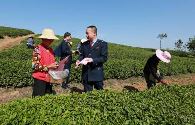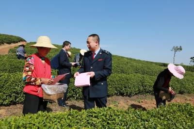 4月25日,竹山县国家税务局青年党员深入宝丰镇韩溪河村茶园向茶农发放“营改增”资料,宣讲“营改增”政策。日前,该局将践行“两学一做”和“营改增”工作紧密结合,设立党员示范岗、青年先锋岗,亮身份、晒承诺,党员干部带头接地气、惠民生,当好民心“联络员”、政策“宣讲员”、致富“服务员”,确保“两学一做”助力“营改增”攻坚战。