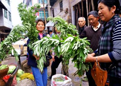 端午节艾蒿俏销6月16日,在恩施市红土乡红土集镇农贸市场内,许多居民正在争相购买艾蒿和粽叶,好一派端午节特有的风景。当天正值端午假日期间,恩施市农民抓住这一商机,纷纷采来独具端午元素的艾蒿、粽叶等物品拿到集市上去卖,不仅给集镇居民带来方便,也给自己带来不菲的收入。(本报视界网彭绍峰谭玉珑摄)红土乡政府13329820218