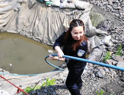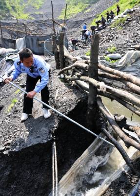 为确保矿区和扒矿渣捡绿松石村民的生命安全,春节后郧阳执法局己两次组织大规模绿松石矿执法。这次执法共拆除矿渣区帐蓬、铁皮房、临时房40多个,捣毁洗矿渣用畜水池40多个。为保障矿渣区长治久安执法局派出10名执法人员长住矿区执法进行封场。