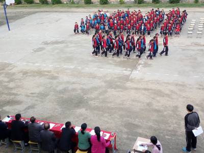 4月27日下午, 在嘹亮的国歌声中,十堰市竹山县楼台乡公安学校拉开了小学生广播体操比赛帷幕。本次体操比赛,各班级在领操员的带领下,迈着整齐的步伐依次进入比赛场地。参赛同学以饱满的精神状态、整齐划一的动作、响亮的口号,在运动场上尽显青春活力和风采。