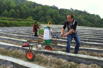 研发盖膜器 生产省工时 “用盖膜器盖膜至少要比人快两倍!”4月28日,咸丰县烟叶分公司现代办副主任宋兴宜帮助高乐山镇白岩村农民秦凤云拉着盖膜器给移栽烟苗的井窖口盖膜。该县最近研发的具有省工省时、减轻劳动强度的膜下“井窖式”小苗移栽盖膜器,该器具操作简单,使用方便,刚投入生产就深受农民喜爱。 视界网 周方奎 摄