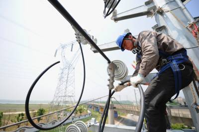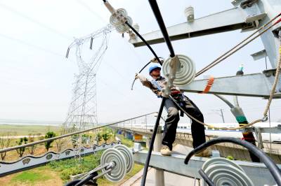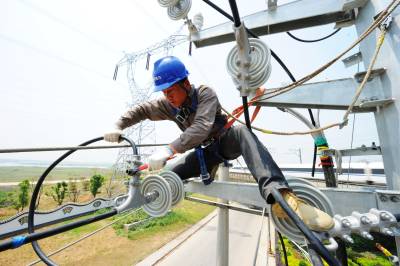 湖北沙洋:塔上“穿针引线” 消除线路隐患