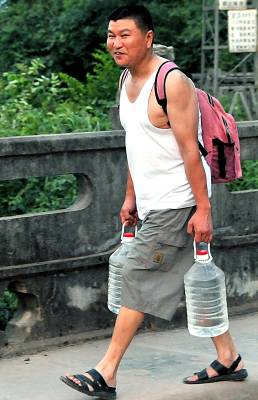 16日晨,宣恩县城通往城外几眼山泉的公路上,背水的人川流不息。而这种现象已持续近十年之久。”城里的自来水是合格,家里饮用的水也是纯净水”,背水的人们说:”背水并不是因为要用这个水,而是在锻炼身体过程中享受这背水的过程!”背水的人们一般集中在早上5-7点之间,他们每天早上为此在林间公路上步行三、五公里,几乎是风雨无阻。(视界网签约摄影师:宋文摄)