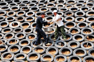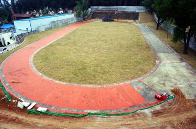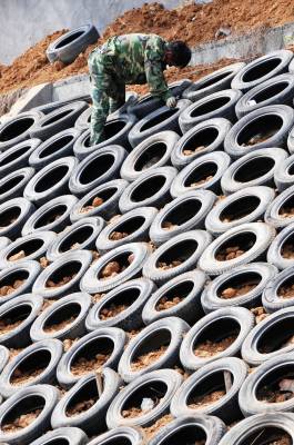4月29日,建设工人正在十堰市郧阳区民兵训练基地对运动场和射击靶场进行标准化建设施工。为加快对民兵训练基地标准化、科学化、规范化建设郧阳区武装部投资对民兵训练基地进行全方位提档升级建设。 视界网周家山 摄