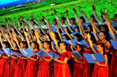 4月29日晚,十堰市郧阳区在区第一中学体育馆举办"劳动美 小康梦"大型诵读会暨劳动模范颁奖仪式。由劳动工人、农民和学生组成的10个节目方队近千人自编、自导、自演的方式诵读点赞劳动光荣。9名市级劳动模范,一家省级"工人先锋号",一家省级"五一劳动奖状"获奖单位在颁奖仪式上领奖。1000多名观众观看了演出,并给予了阵阵掌声 视界网周家山 摄