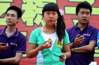 2010年6月16日,端午节,武汉举办首届吃粽子趣味大赛,150名市民现场PK吃粽子,在规定时间内吃粽子最多的参赛者当选为”粽子天敌”。最后,第一名1人赢得5000元现金,第二名2人并列合分奖金3000元,第三名3人并列合分奖金1000元。据了解,中华民族五月初五端午佳节时有赛龙舟品美粽的习俗。