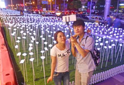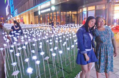 > 武汉万朵LED银河玖瑰亮起来 为"五一"劳动节