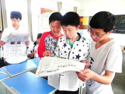 5月3日,郧阳区青曲镇初级中学学生在阅读《十堰日报》刊载的“内外兼修、五城联创”栏目,了解郧阳区及全市的“卫生、环保、文明、森林、生态”城市创建工作典型做法,取得的成就。郧阳区各学校结合教育工作实际,全面开展“五城联创”、社会主义核心价值观和讲文明树新风宣传,举行“小手拉大手”活动,培养学生良好的文明行为习惯,引导师生以良好的言行影响父母,引领身边人,为“五城联创”活动发一份光、尽一份心、出一份力,共同建设我们美丽和谐的幸福家园。