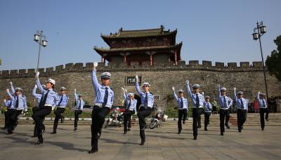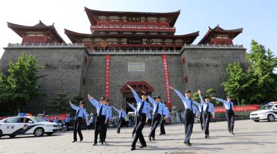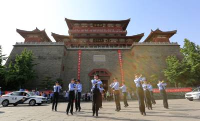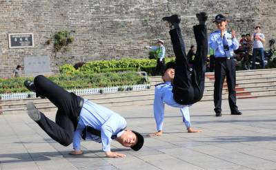 当日,湖北省襄阳市襄城区公安分局举行“激扬青春,炫我风采”青年民警、辅警快闪舞。鼓楼、檀溪两个街头警务服务站青年民警以交警手势操为主要动作,融合街舞等舞蹈,精心编排,在市区主要广场昭明台广场、小北门广场、岘山文化广场举行3场民警快闪舞。舞曲结束后,十余民警纷纷走入群众,发放防虚假信息诈骗、防火、防盗宣传单,提醒广大群众一定要擦亮眼睛、识别骗术、谨防受骗。几分钟后,民警们收拾好装备器材,迅速撤离了现场。