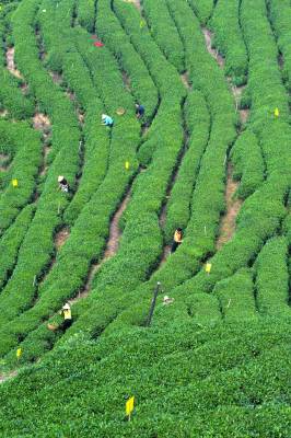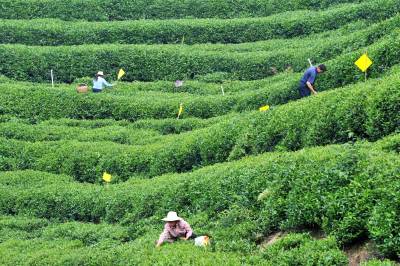 连日来,在湖北省宜昌市夷陵区邓村乡王家垭有机茶园里,村民抓住晴好天气加紧采摘夏茶,全乡茶叶生产呈现一片生机盎然。 宜昌市夷陵区邓村乡是”中国名茶之乡”。该乡近年来以”绿色、健康、安全、优质”为目标实施高效示范茶园工程,建成了集”生态、观光、旅游”特色与经济效益于一体的高效示范茶园和茶叶板块基地,茶叶面积达到6.5万亩,产值1亿多元,茶叶成为当地3万多农民收入的主要来源。本报视界网张国荣摄