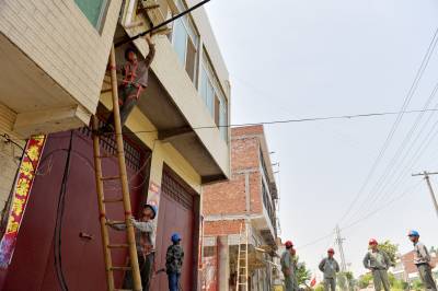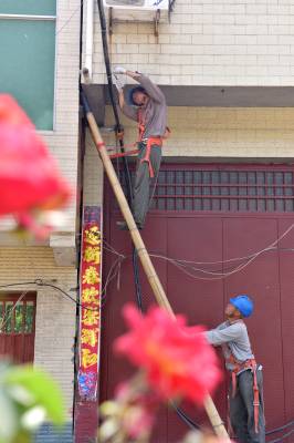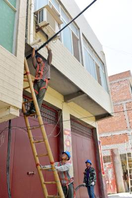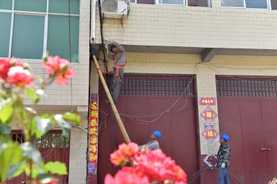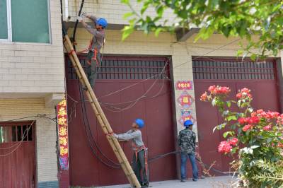 5月4日上午,在老河口市孟楼镇杨岗村一组,来自老河口市供电公司的施工人员正在该村改造低压下火线,对导线规格进行提档升级,满足即将到来的夏季用电高峰。夏季到来之前,该公司计划新建和改造10千伏线路53.86公里;新建和改造低压线路321.6公里;新增和改造变压器119台,新增容量16035千伏安,用于解决夏季用电卡口问题。共投资3384.7万元,预计在6月1日前完工。