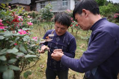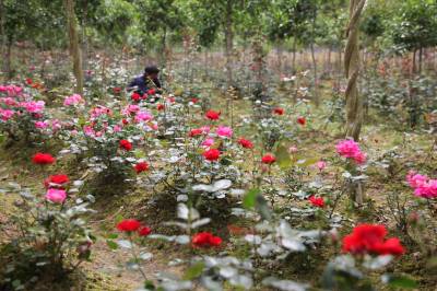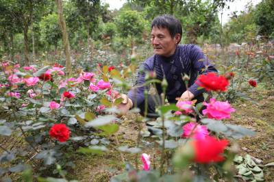 5月3日,咸丰县朝阳寺镇五龙坪村8组村民周治善在田间侍候花卉苗木。周治善从2014年开始种植花卉苗木,现已培育月季、玫瑰、海棠、梅花、桂花、紫薇共2万余株。今年3月,周治善嫁接的十株月季卖得一万元,成为当地有名的卖花老农。
