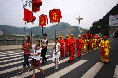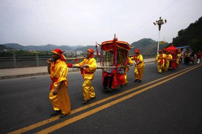 轿子迎亲很”低碳”6月16日,竹山县城关镇一对新人用传统礼节结婚,新郎雇用8人抬的轿子把新娘接回家,吸引了不少眼球。婚礼策划公司坦言,如今很多婚礼”豪华婚车排长队、昂贵酒席摆满屋”,的确过于铺张浪费,让人看腻了,而这样的迎亲方式既回归了传统,又符合现在所提倡的”低碳”生活,容易被年轻人接受。(本报视界网章磊摄)图片:1、2”低碳”迎亲队地址:竹山县交通局章磊电话:15972574118