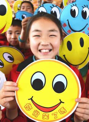 5月6日,小学生展示“微笑脸谱”和笑容。当日,湖北省十堰市郧阳区柳陂镇中心小学开展“微笑日 比微笑”主题行为表情比赛活动,学生通过比制作“微笑脸谱”、比笑容、比讲笑话、“微笑”打招呼等方式,培养学生乐观健康的心态,以“微笑”传递人与人之间的愉悦与友善,用甜蜜、灿烂、阳光的“微笑表情”面对生活的每一天,以迎接5月8日第68个“世界微笑日”的到来。