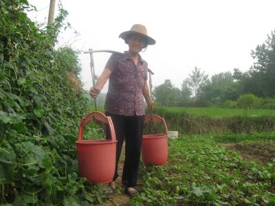 七旬老妈不服老年产蔬菜4万斤6月15日,年满七旬的安陆市王义贞镇汝南村三组谢宽珍老人正在菜园挑水,给蔬菜浇水。谢宽珍一生勤劳,从不闲着;虽然现在70岁了,但她的一亩菜园仍然四季葱绿,蔬菜不断。瞧,老人家菜园的辣椒、茄子、黄瓜、瓠子、豇豆比比皆是,苋菜、韭菜、白花菜长势喜人——据老人讲,她每天摘下上百斤蔬菜,以满足市场需求;一年下来,可为市场提供蔬菜2万公斤。签约摄影师:王代金