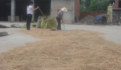 把夏粮收进仓端午节期间天气晴好(6月15日),安陆市农民正赶着晴好天气晾晒小麦,然后装袋进仓。图为王义贞镇汝南村王连芳正和女儿在把小麦装袋。据了解,王连芳家去年播下了6.5亩小麦,预计可收获小麦4000斤。签约摄影师:王代金