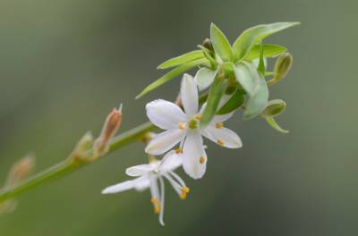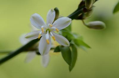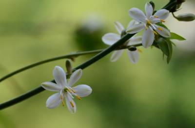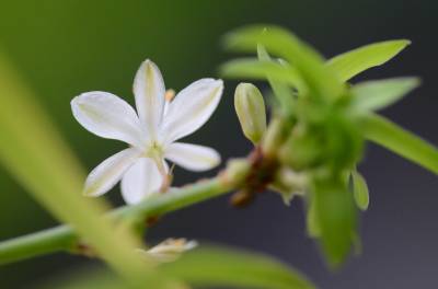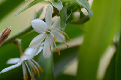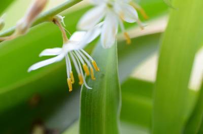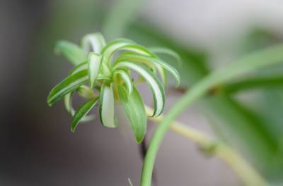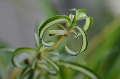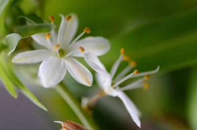单子叶植物纲、百合科、吊兰属多年生常绿草本植物,根状茎平生或斜生,有多数肥厚的根。叶丛生,线形,叶细长,似兰花。有时中间有绿色或黄色条纹。花茎从叶丛中抽出,长成匍匐茎在顶端抽叶成簇,花白色,常2-4朵簇生,排成疏散的总状花序或圆锥花序偶然内部会出现紫色花瓣;蒴果三棱状扁球形,长约5毫米,宽约8毫米,每室具种子3-5颗。花期5月,果期8月。[2] 植株有净化空气的作用,全株可入药。