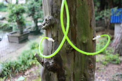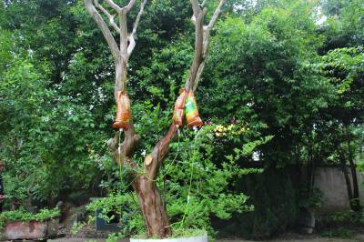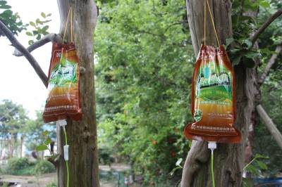 2016年05月09日,云梦县天成实业公司给树输液打点滴。 这是云梦天成实业公司园艺工使用吊瓶输液法来防治树木病虫害,同时给树输液打点滴来增加营养。这种输液法不仅提高了农药的使用率,而且安全、经济,不受地理环境和气候变化的影响,同时给树苗以必要的营养补充,促进树木健康茂盛生长。