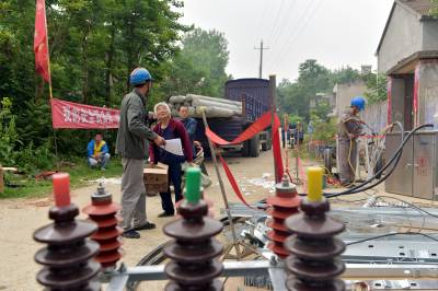 湖北沙洋:塔上“穿针引线” 消除线路隐患