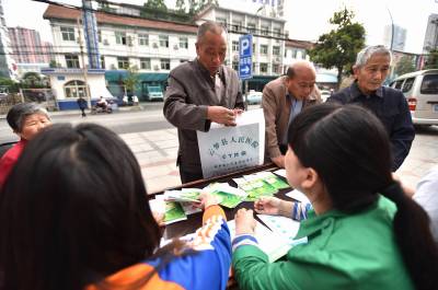5月10日, 云梦县新型农村合作医疗管理委员会办公室(简称“合管办”)工作人员在城关建设路人民会场门前开展主题为“新农合政策情系你我他”的政策宣传活动。当日,该县合管办及17家新农合定点医疗机构同时组织人员走上街头、进社区、进病房病区宣传“2016年新农合统一补偿方案”,面对面接受群众政策咨询,旨在让农民充分享受新农合惠民政策,提升受益程度。 (王云清 摄)