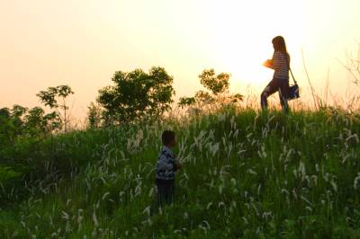 2016年05月10日,游人在云梦县曾店农村原野踏青游玩。原野,蓝天,白云,清风,青草,绿树,野花,夕阳,飞鸟,虫鸣,儿童,童趣,游玩的人们,构成初夏原野风景画,让游人流连忘返。