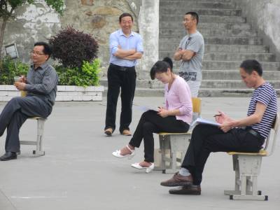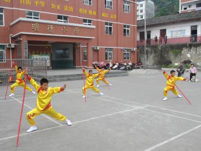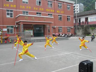 5月12日,湖北省竹山县潘口乡中心小学和该校附属幼儿园的孩子们在表演舞蹈、小品、少林功夫等节目,参与该县第十届少儿才艺赛参赛节目的评选。