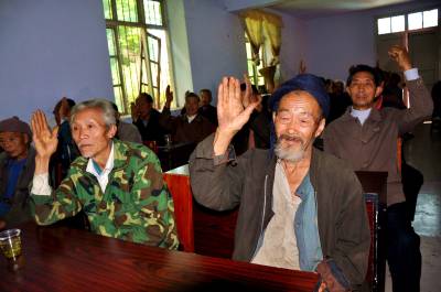 农民入党积极分子过好”六关”6月16日,笔者在恩施市红土溪村党员活动室看到,80多名党员正在对4名入党积极分子一一举手表决,这是该乡入党积极分子的过票决关的一个缩影。据悉,近几年来,该乡党委高度重视对入党积极分子培养和教育工作,做到措施实、责任明,过好发展农民党员”六关”(入口关、标准关、考察关、票决关、公示关、培养关)。目前,该乡已有32名农民入党积极分子高票通过了票决关。(本报视界网彭绍峰通讯员廖荣华摄)红土乡政府13329820218