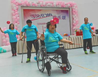 5月15日,是第26个全国助残曰。13日上午,湖北省武汉市江汉区残联、区残疾人艺术联合会联合主办了以"我们的欢乐颂"为主题的庆祝第26个全国助残曰活动。来自全区13条街道、百余个社区3万名残疾人中喜好文体生活的佼佼者,欢乐在区残联,展出了他们心灵手巧的书法、剪纸、叶雕、皮雕、彩蛋、编织、歌舞、摄影等佳作,颂美了他们自强不息,奋力拚博,战胜自我,热爱幸福生活。