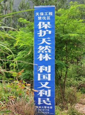 2010年6月16日在湖北省宜昌市夷陵区太平溪镇境内拍摄的封山育林宣传牌。截至6月14日,湖北省宜昌市完成植树造林19.43万亩,占年初计划的97.2%。今年,宜昌新增封山育林18.3万亩,中幼林抚育52.3万亩,完成育苗9610亩,容器育苗1460万袋,四旁植树570万株。本报视界网张国荣摄