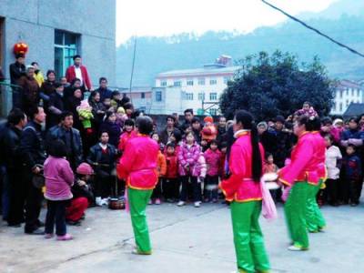 ”多彩湖北”摄影应征稿件山乡农民看自己的演艺队自编自演的节目