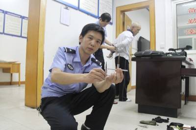 6.17日晚9许,两名武汉籍男子从广水市盗窃一辆摩托车途经安陆时,被安陆市巡逻民警发现,当场抓获,经实验嫌疑人自制的盗窃摩托车的工具,与摩托车原配钥匙一样好用。图为民警展示嫌疑人自制的盗窃工具。