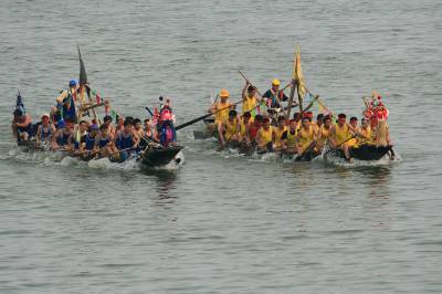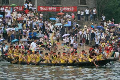 6月16日,是传统的端午佳节,在浠水县的策湖湖区,数10个自然村的村民在村"龙舟协会"的组织下,正举办村龙舟竟渡大赛.策湖是个天然的淡水湖泊,湖区水面有1.5万亩,平均水深4米,策湖水质优良,水产丰盛,古时属长江故道,三国时期,东吴孙策在此训练水军,后人故名"策湖".龙舟赛是村一项重要的民俗活动,至今仍保留坚持了下来,成为一个村级举办的传统赛事,在鄂东南地区有很大影响,对发展村级经济,弘扬传统文化起到了有益的推动作用.下午2:30分,随着一声鼓响,龙舟赛正式开赛,两艘龙船各100位龙舟手分五次比赛,每次每艘20人参赛,只见赛场鼓号喧天,彩旗飘扬,呐喊声、欢呼声此起彼伏,人人脸上都洋溢着欢乐的笑容.比赛还吸引了武汉、黄石和浠水周边众多群众前来观赛.