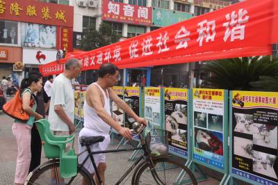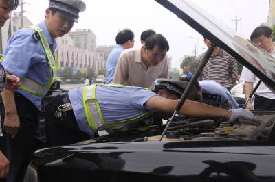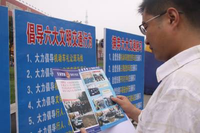 6.18日上午,安陆市举行机动车辆涉牌涉证交通违法行为专项整治启动仪式,在太白广场摆放了大量宣传牌,并向群众发放宣传资料,让群众直接感受交通违法的危害性,向群众宣传文明交通、安全出行的理念。图1-3为群众观看宣传资料,图4为18日上午,安陆执勤交警正在对一辆涉嫌套牌的车辆进行检查。