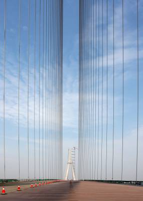 建设中的黄石长江二桥--鄂东大桥,正如天宫舞台帘幕悄然降临人间。