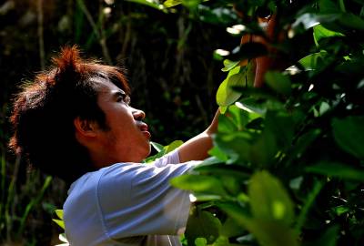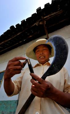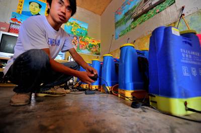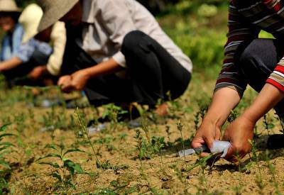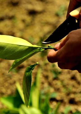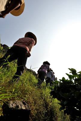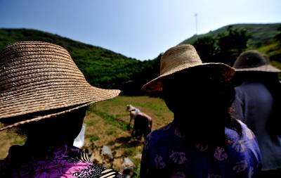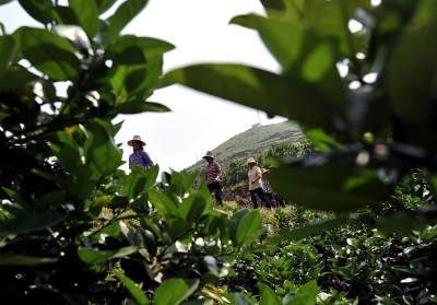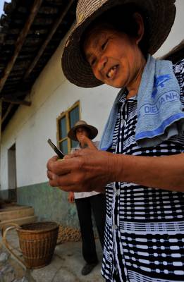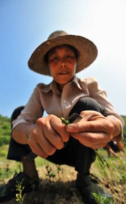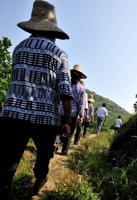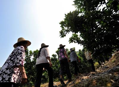 18日,宣恩县李家河乡二虎寨村村民谭绍荣的500亩果园里,一队农妇在进行嫁接、除草等田间管理。这些农妇是果园周边的村民,他们不仅为谭绍荣的果园提供农技服务,而且把服务的触角延伸到了与之相邻的湖南、重庆、四川等农村。二虎寨村共3000余村民,从上世纪80年代初期开始,村民因土地大多为”不毛之地”、粮食产量低而选择果树种植,到目前村中无论男女老少,都是果树嫁接、施肥剪枝、防病防虫的行家里手。许多农民甚至在湖北来凤、湖南龙山、重庆黔江等地设立了自己的果树种植管理服务”办事处”。二虎寨村所在的李家河乡,目前种有贡水白柚、柑橘等鲜果4万余亩。这个早在1997年被恩施州命名的”柑橘第一乡”的乡镇,因为有了二虎寨的”田秀才”们,乡里仅安排了4名农技人员对4万余亩果园开展农技服务,有时都还显”多余”。(视界网签约摄影师:宋文摄)