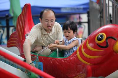 父亲节和孩子分享快乐时光6月19日,宜昌城区儿童公园里,家长正在陪孩子玩耍。父亲节到来,宜昌许多爸爸们都收到了子女的祝福,爸爸们也和孩子们共同分享节日的快乐。本报视界网黄翔摄