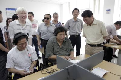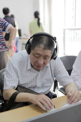 宜昌、荆州、荆门、三地盲人体验阅读乐趣6月19日,来自荆州、荆门、宜昌的百余名盲人朋友走进宜昌市图书馆爱心阅览室,感受这里专为盲人朋友服务的视听点播系统。宜昌市图书馆专为视障人士服务的爱心阅览室,配备有盲文图书600余册,盲人有声读物775盘,不仅可为盲人读者提供图书借阅服务,还可提供语音上网、AOD(音频点播)、盲文资料打印等。极大地方便了盲人读者的阅读,让残疾人也能享受到”共享工程”提供的资源服务。本报视界网黄翔摄