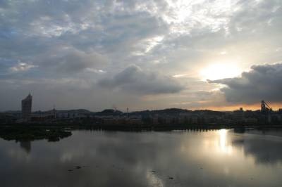鄂州洋南湖畔:综合大楼及住宅小区沿湖滨大道而建。初夏时节,垂柳依依。一场激烈的暴雨过后,云蒸霞蔚,阳光洒落湖面……吴风平摄