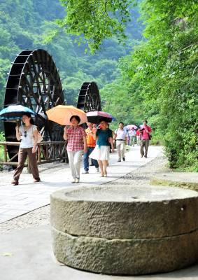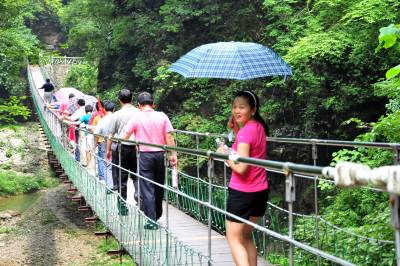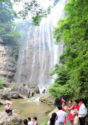 2010年6月19日,在湖北省宜昌市夷陵区黄花乡境内,一个以大瀑布为主要景点的山水风景旅游区,吸引了众多游客来此享受”天然氧吧”。 宜昌市夷陵区是国家5A级景区三峡大坝旅游区所在地,旅游资源丰富,在国家颁布的旅游资源评价标准8类155种中,夷陵就有8类142种,集名山秀峰、奇特地貌、民俗风情等于一体,有长江三峡最美的地方三峡人家风景区、神农驿站三峡晓峰旅游区、长江第一峡南津关大峡谷探险旅游区、国家森林公园大老岭和南方草场百里荒等山水美景,年接待中外游客达到212万人次,年旅游综合收入达到10亿多元。本报视界网张国荣摄