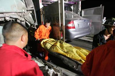 19日晚7点30分左右,沪渝高速长阳贺家坪段发生惨烈车祸,恩施往宜昌方向,包括两辆卧铺客车在内的7车连环相撞。记者在现场了解到,截至20日凌晨零点30分,事故已至少造成5人死亡,32人受伤。事故现场位于沪渝高速渔泉溪大桥附近,9日晚10时许,记者赶到现场,事故现场已被警方封锁,受伤人员已被送往医院,桥面附近,包括两辆卧铺客车在内的7辆车撞在了一起,最前方的一辆越野车后半部完全被撞毁,一辆拖商品车的挂车、奉节至龙岗的卧铺客车、恩施至杭州卧铺客车及一辆小车紧紧挤在了一起。在长阳县人民医院住院部,外一、外二、ICU等科室均有此次事故伤员,长阳县卫生局有关负责人介绍,事故发生后,4台救护车往返于县城和事故现场之间运送伤员。长阳县人民医院包括重症病房、外科、急诊科、医技科室在内的几乎所有医护人员被紧急召集,全力投入到抢救工作中。据初步统计,截至20日凌晨零点30分,除一人在运送途中因伤势过重死亡外,该院共收治伤员30人,其中重伤者5人,其余大部分为软组织挫伤。此外,长阳县中医院、长阳县高家堰镇卫生院也分别收治了1名伤员。
