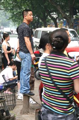昨日中午,在武汉一初慧泉中学考点门前,一位父亲站在人行道隔离柱上,翘首盼望即将考完首门学科的孩子。张垠摄江汉区园林局430022